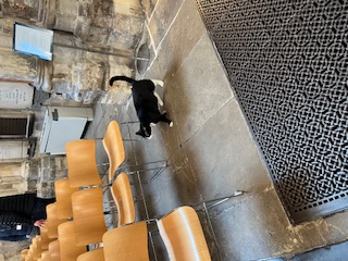 Although we didn't see him, below is Hodge, who was rescued by the Cathedral and now calls it home!